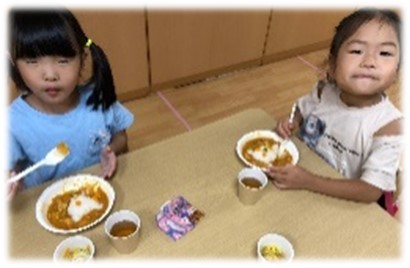 子どもたちが自分たちで料理をしたり、盛り付けをしたりするのはとても楽しく効果的な食育の一つとされています。昨年度からはコロナウイルスの流行によってみんなで料理をすることはできませんでしたが、提供方法を工夫して、自分の分を完成させるセルフクッキングを積極的に取り入れています。