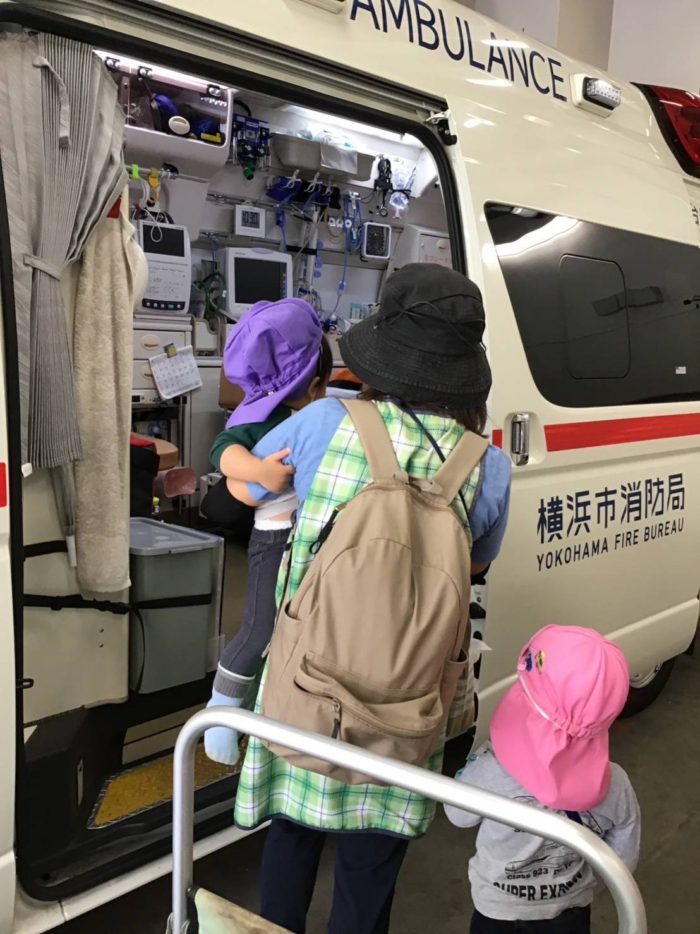 こどもたちから大人気のはたらく車、救急車!1歳児・3歳児クラスで中を見学させてもらいました♪