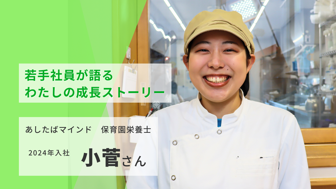 第7回は、あしたばマインドに入社し、保育園栄養士として勤務する小菅さんです。